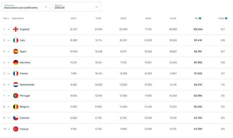 Uefa ülke puani Sirlamasi
