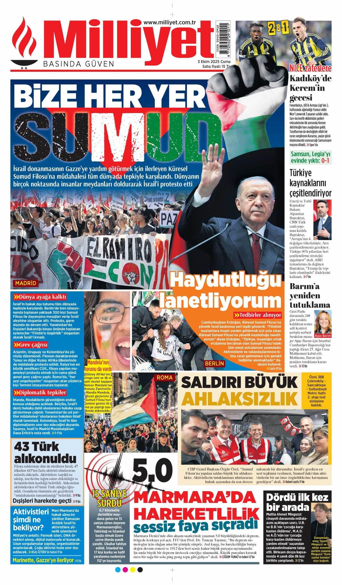 Milliyet Gazetesi 3 Ekim 2025 Günü Manşeti